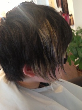 とても個性的なお客様だったので、アシンメトリー風にエクステ部分を長めに残して、メッシュの入れる場所も個性的にしてみました! 色もアッシュのような。。。緑のような。。。